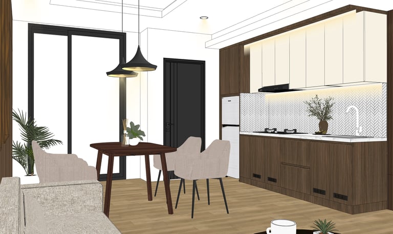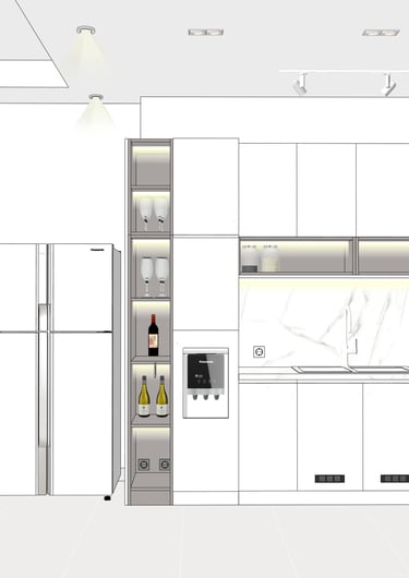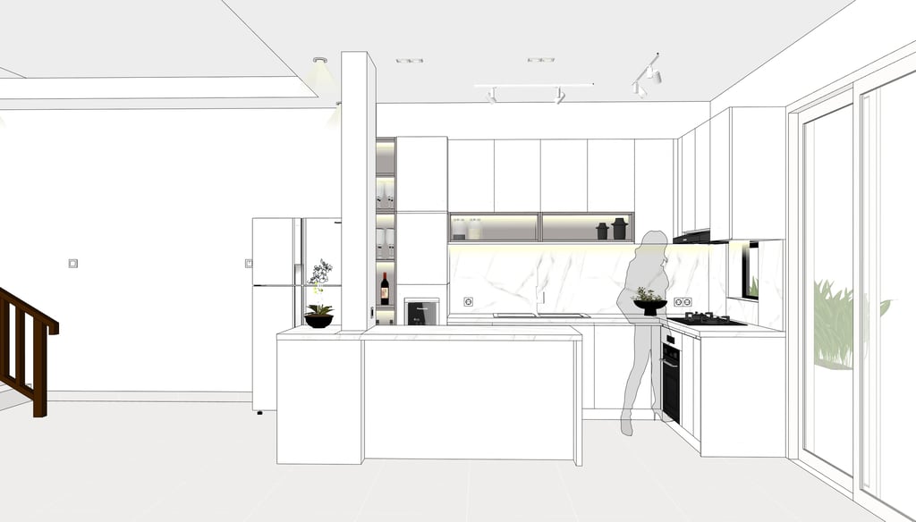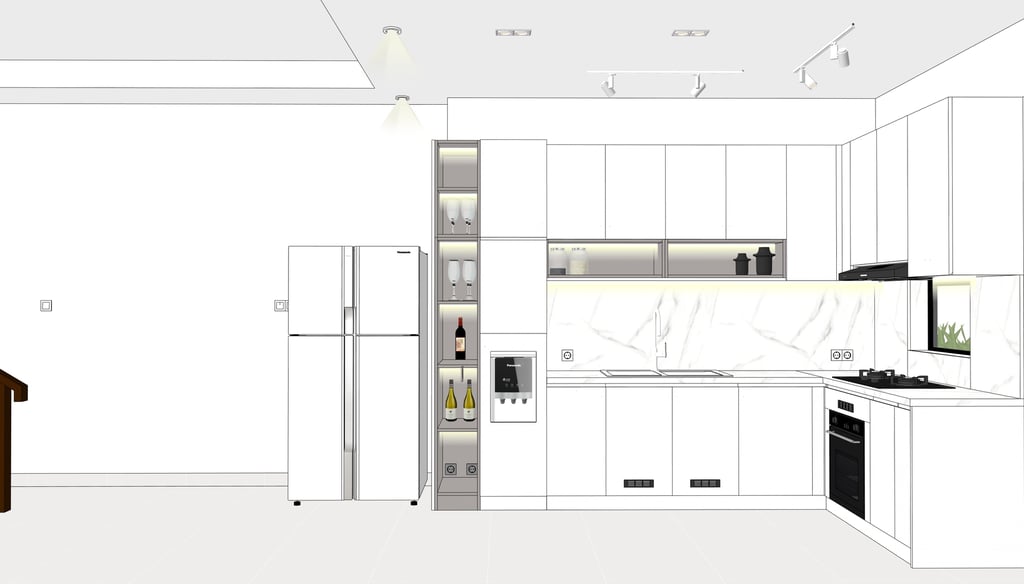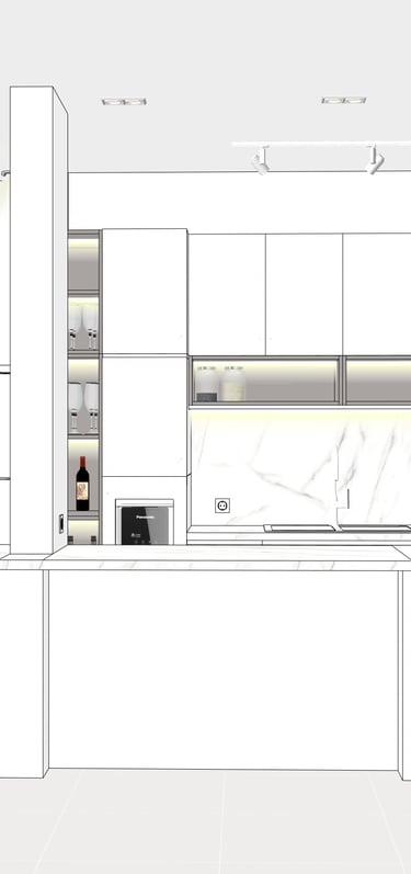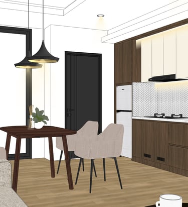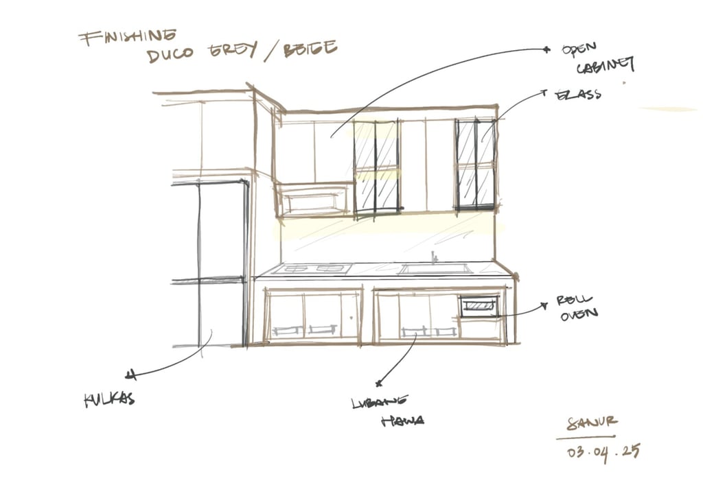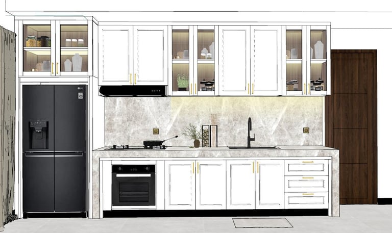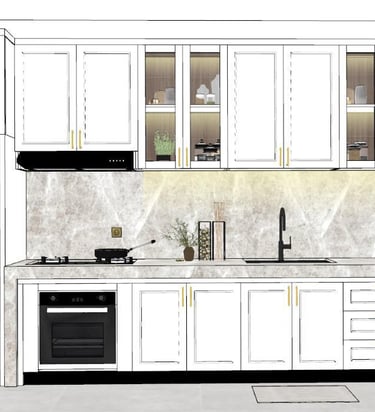 This portfolio project was completed as part of a studio project designing the kitchen interior. The designer handled the design process from client consultation, user needs briefing, and concept development, to design development and design presentation, up to the project agreement and payment stage. The designer was not involved in project supervision or construction monitoring.