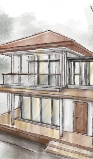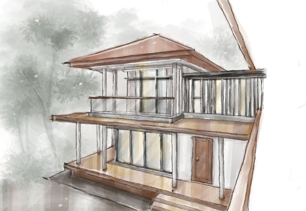 This portfolio project was completed as a freelance guest house design project. The designer was responsible for the interior design scope, including rendering and exterior design development, but was not involved in the project supervision or construction monitoring phase.