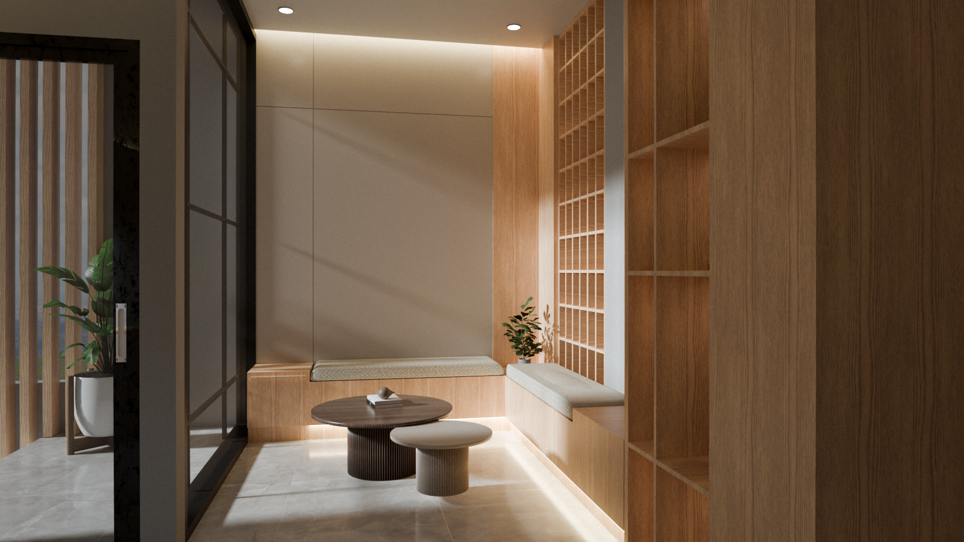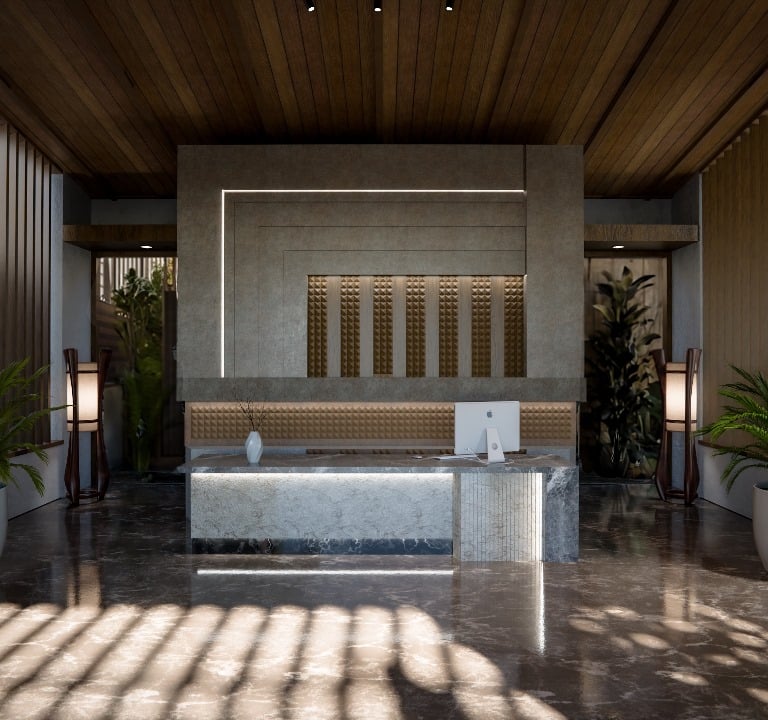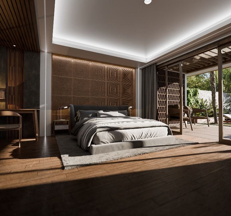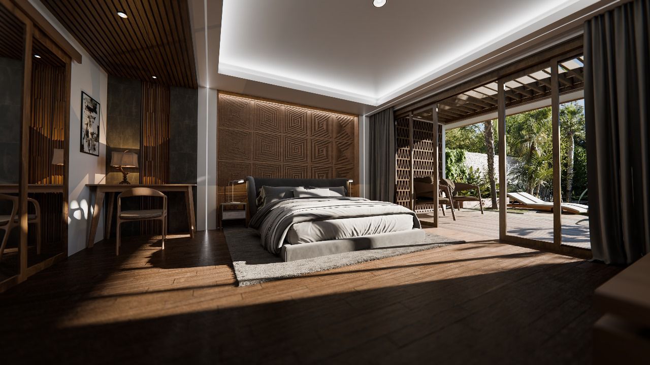 This portfolio project was completed as a freelance villa interior design project. The designer was responsible for the design/render development scope, while the role did not include supervision or involvement during the installation phase.