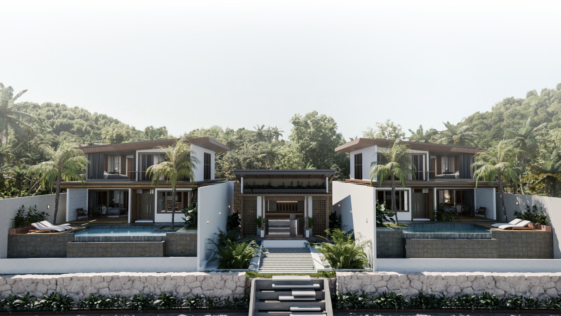 The project involves the interior and architectural design of a villa, developed with a natural modern style that emphasizes the use of wood and natural stone materials to create a warm and harmonious atmosphere.