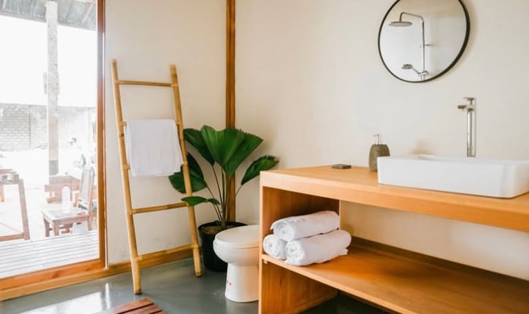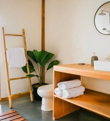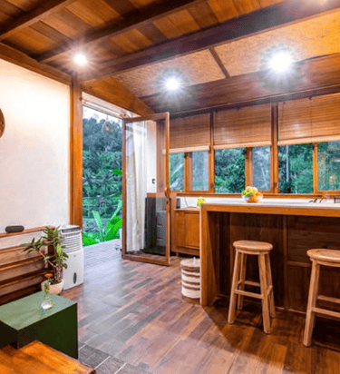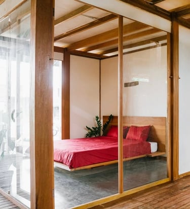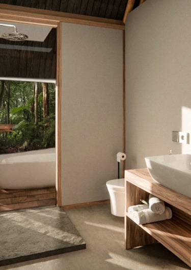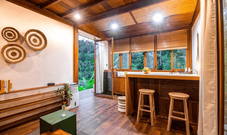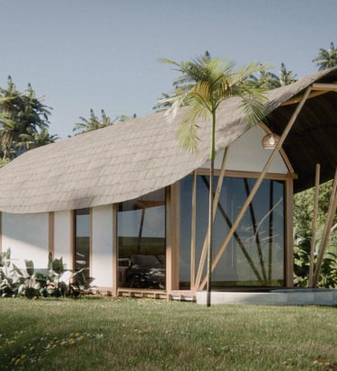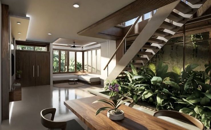 This project focuses on an interior design concept that emphasizes sustainable materials. The design incorporates solid wood for the interior areas, bamboo as the primary building material, and rattan accents applied to interior accessories to enhance the natural and eco-friendly character of the space.