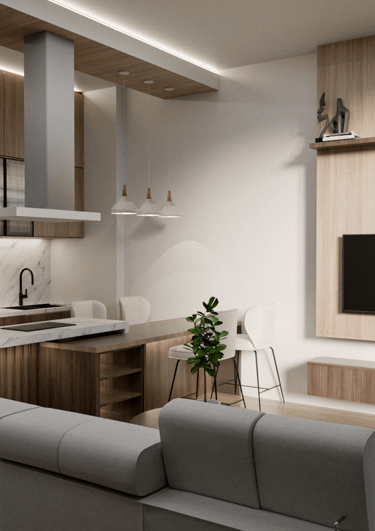 This portfolio project was completed as a freelance residential design project. The designer handled the entire design/render scope, including concept development, preparation of working drawings, and monitoring the project progress to ensure the construction was aligned with the design plans.