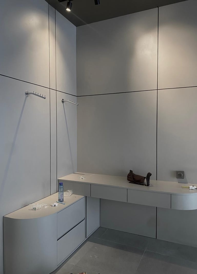 This project involves the architectural and interior design of a tattoo studio, developed with a modern minimalist concept. The interior primarily utilizes plywood materials with HPL finishing, creating a clean, functional, and contemporary environment that supports the studio’s creative atmosphere.